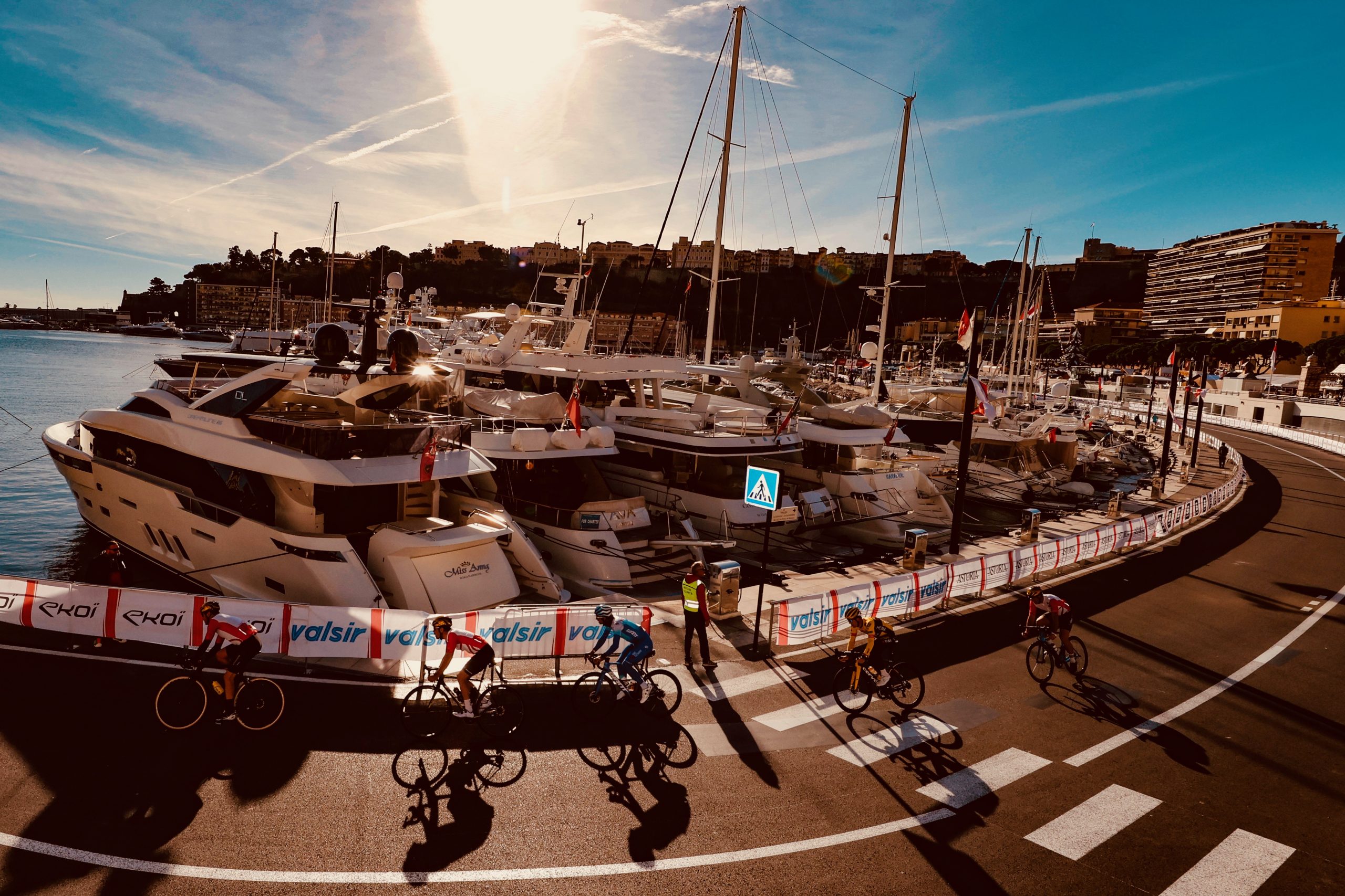 It is 1.30 p.m. when the Port Hercule roadway becomes the stage for the professionals – and supporters of the event. Everything is ready at the start of the Criterium, the highlight race of the day.