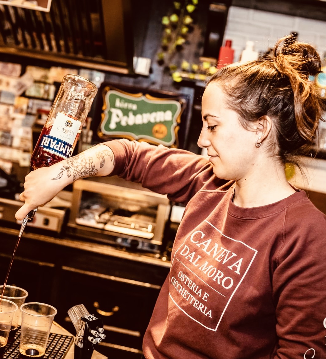 Per la Caneva, il concetto di aggregazione in una realtà come quella di Montebelluna è molto importante, racconta la volontà di essere un punto di riferimento per la vita sociale, in modo solare e disinvolto. Oltre che essere un luogo di incontro per tante compagnie di amici, qui ci si ritrova per una tradizione veneta golosa e stuzzicante, quella dei cicchetti – accompagnati da un buon calice di vino o da un drink. Tra i preferiti dei clienti del cuore ci sono sicuramente quelli con il tipico Baccalà, le polpette di carne ma anche alcuni dai gusti più particolari come brie e marmellata e porchetta con salsa al tonno. Un mix di sapori e tradizione che rendono la Caneva una realtà dove sentirsi a proprio agio, fuori dal mondo, almeno per una sera.